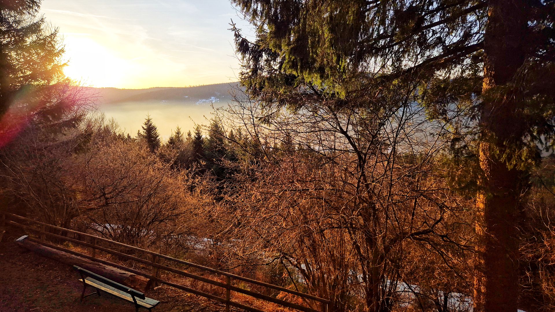 Der Sonntagmorgen belohnte uns mit einem tollen Sonnenaufgang. Danach ging es nach dem leckeren Frühstück nochmals durch den winterlichen Nationalpark zum Badener Höhe Turm hinauf. Auf dem Weg dahin wurde immer wieder Stopps eingelegt und Fragen zum Winter, Wald und Nationalpark an 2 Teams gestellt. Zurück am Haus wurden schnell ein paar Tische und Bänke aufgestellt und wir konnten uns in der Wintersonne sitzend stärken. Danach hieß es Abschied nehmen.