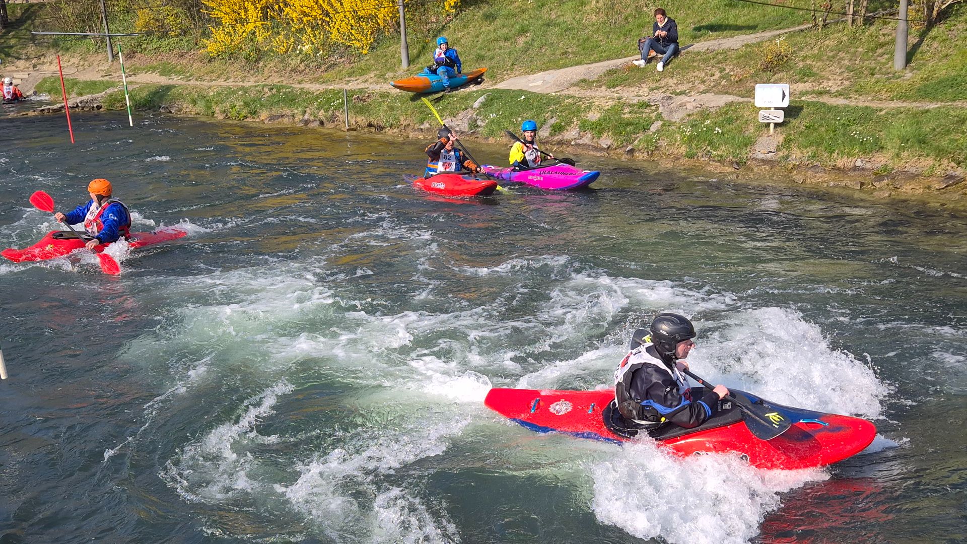 Bei tollen Frühlingswetter konnten wir bei optimalen Bedingungen trainieren. Der Wildwasserkanal in Hüningen bietet für sowohl für Einsteiger als auch Fortgeschrittene tolle Übungsmöglichkeiten.